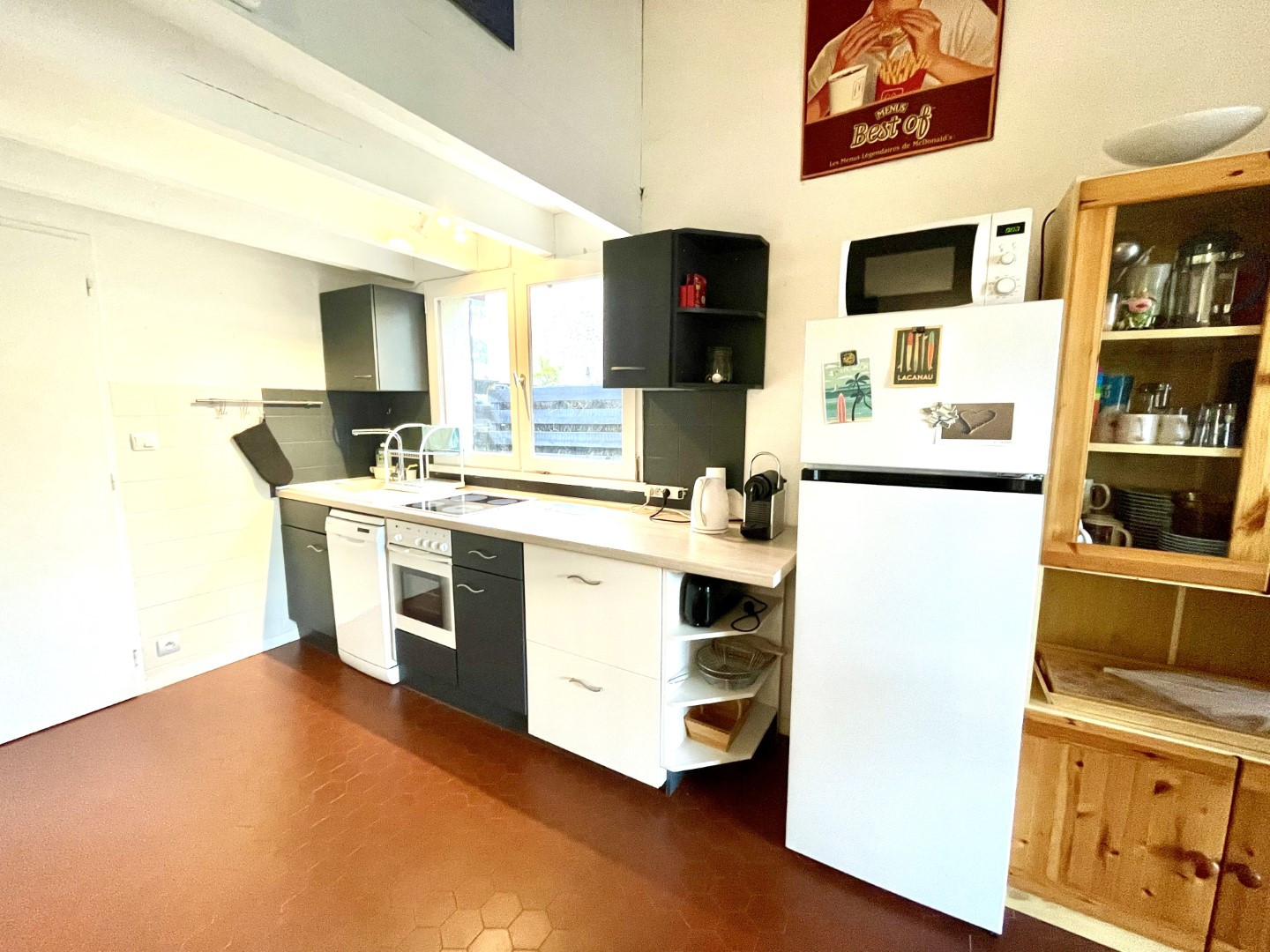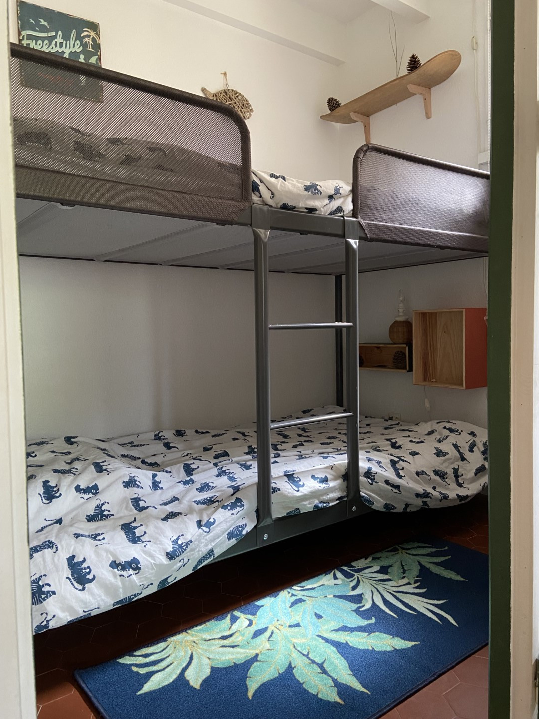 Le grand lit du haut, la plancha, les petites poubelles extérieures, le lave linge, le lave vaisselle