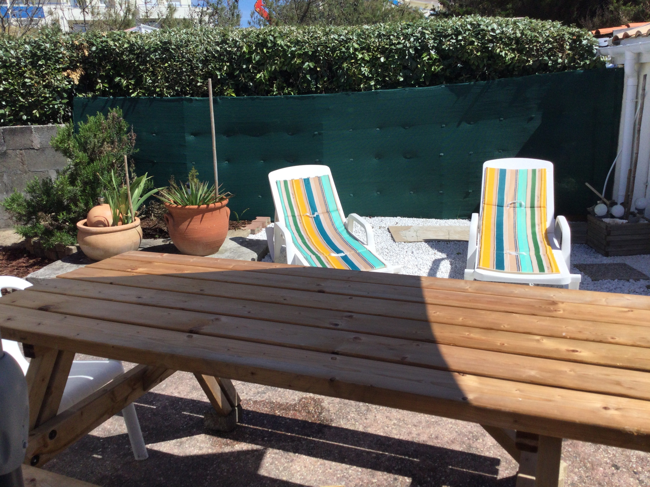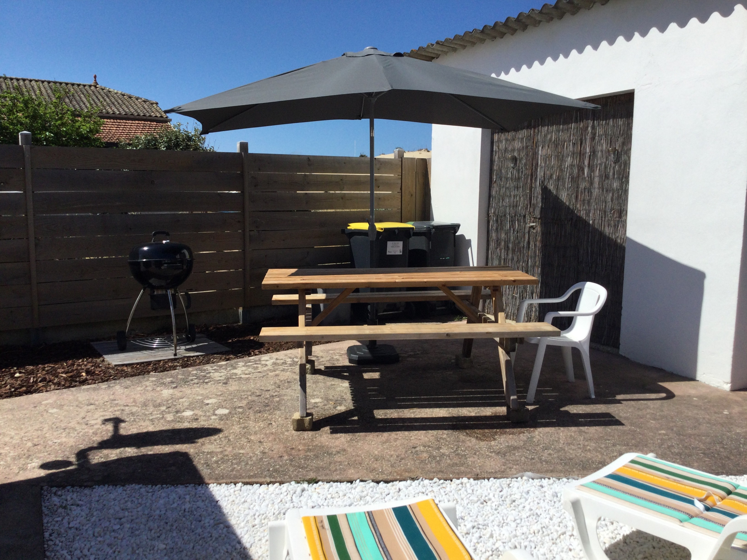 TERRASSE : salon de jardin - barbecue - transats - parasols