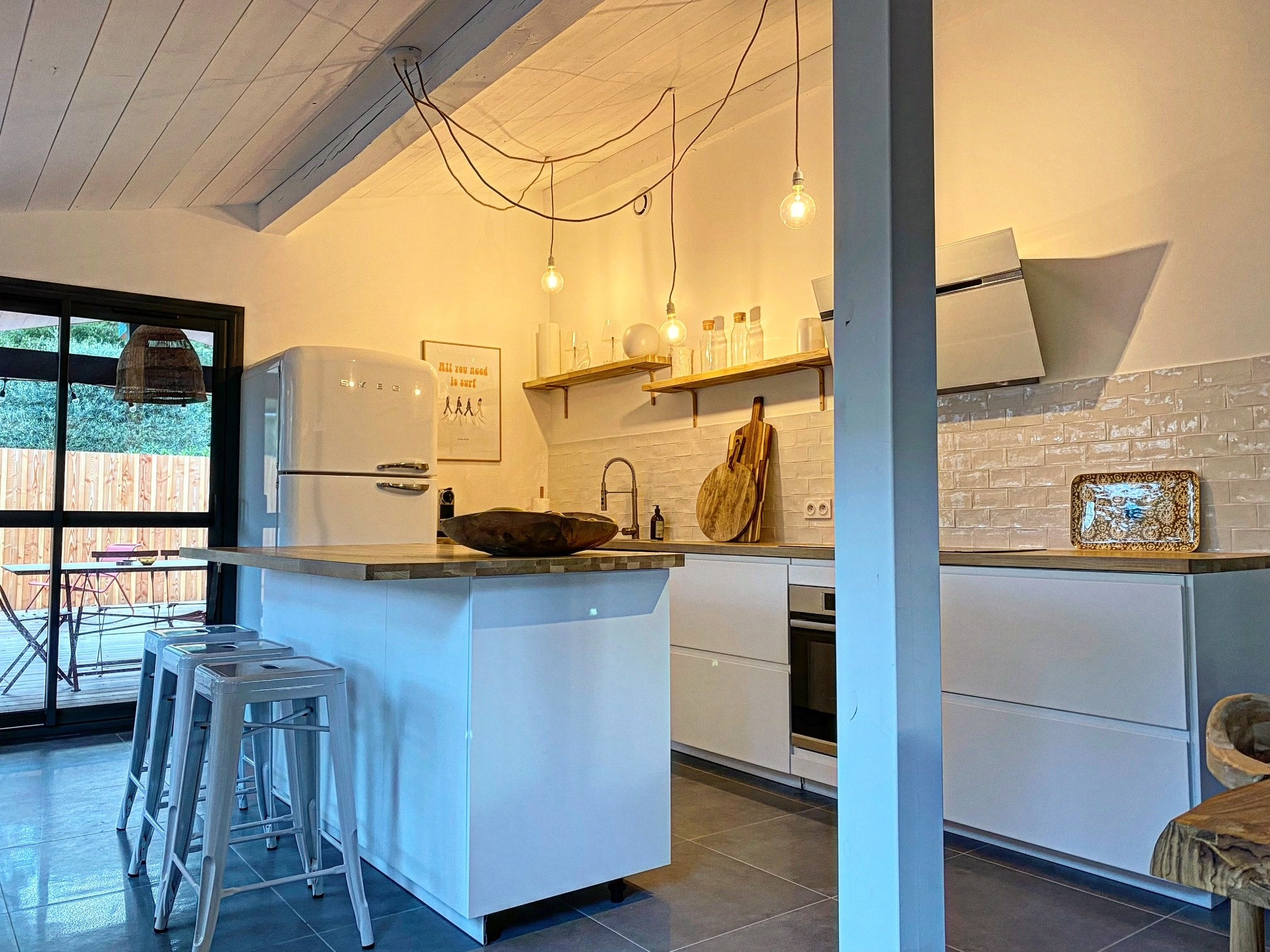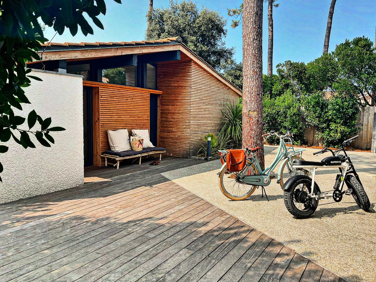 Villa rénovée avec goût de plain pied située dans une rue calme sur le côté sud de Lacanau avec jardin clos et Jacuzzi. WIFI et CLIMATISATION.