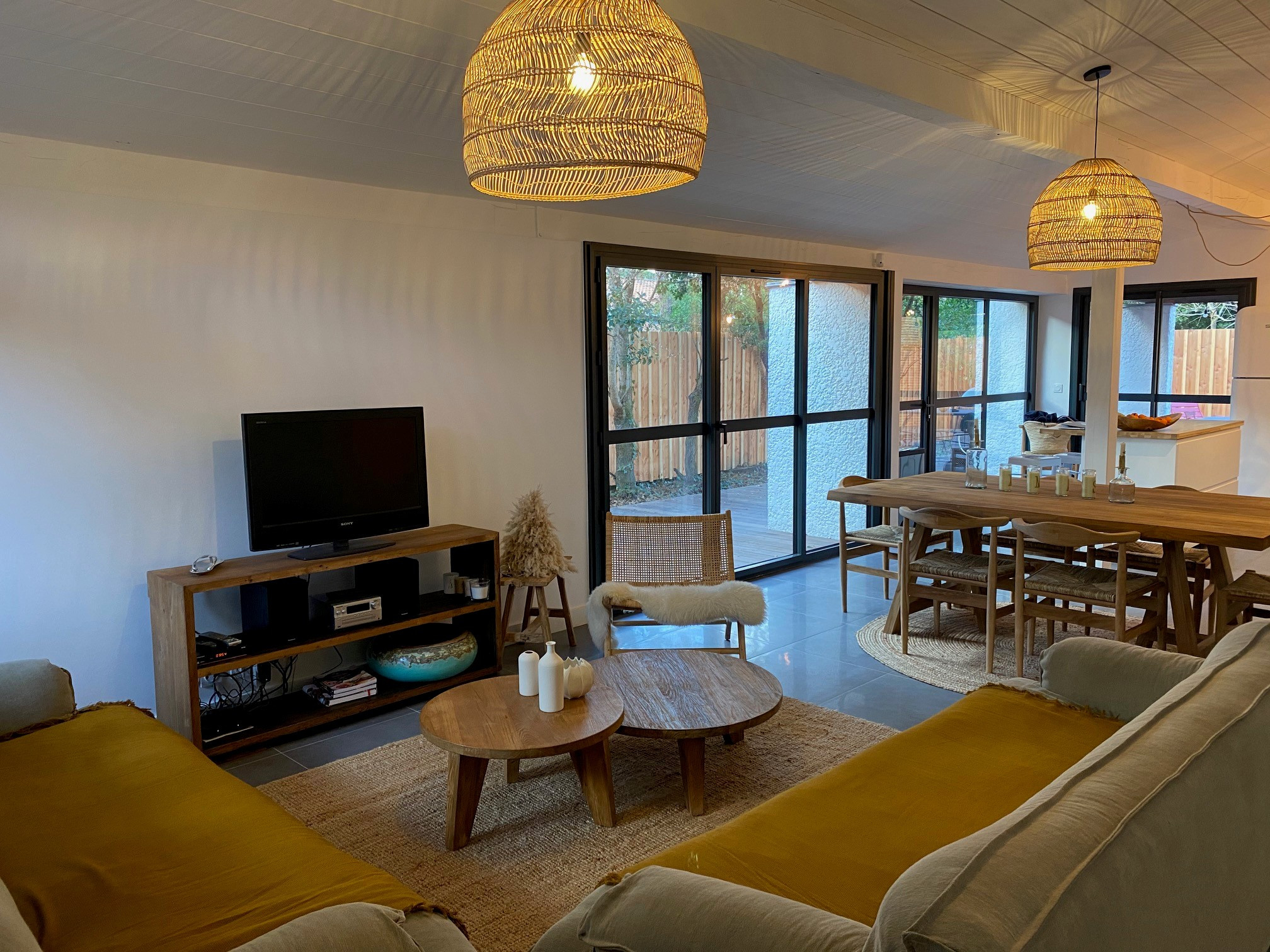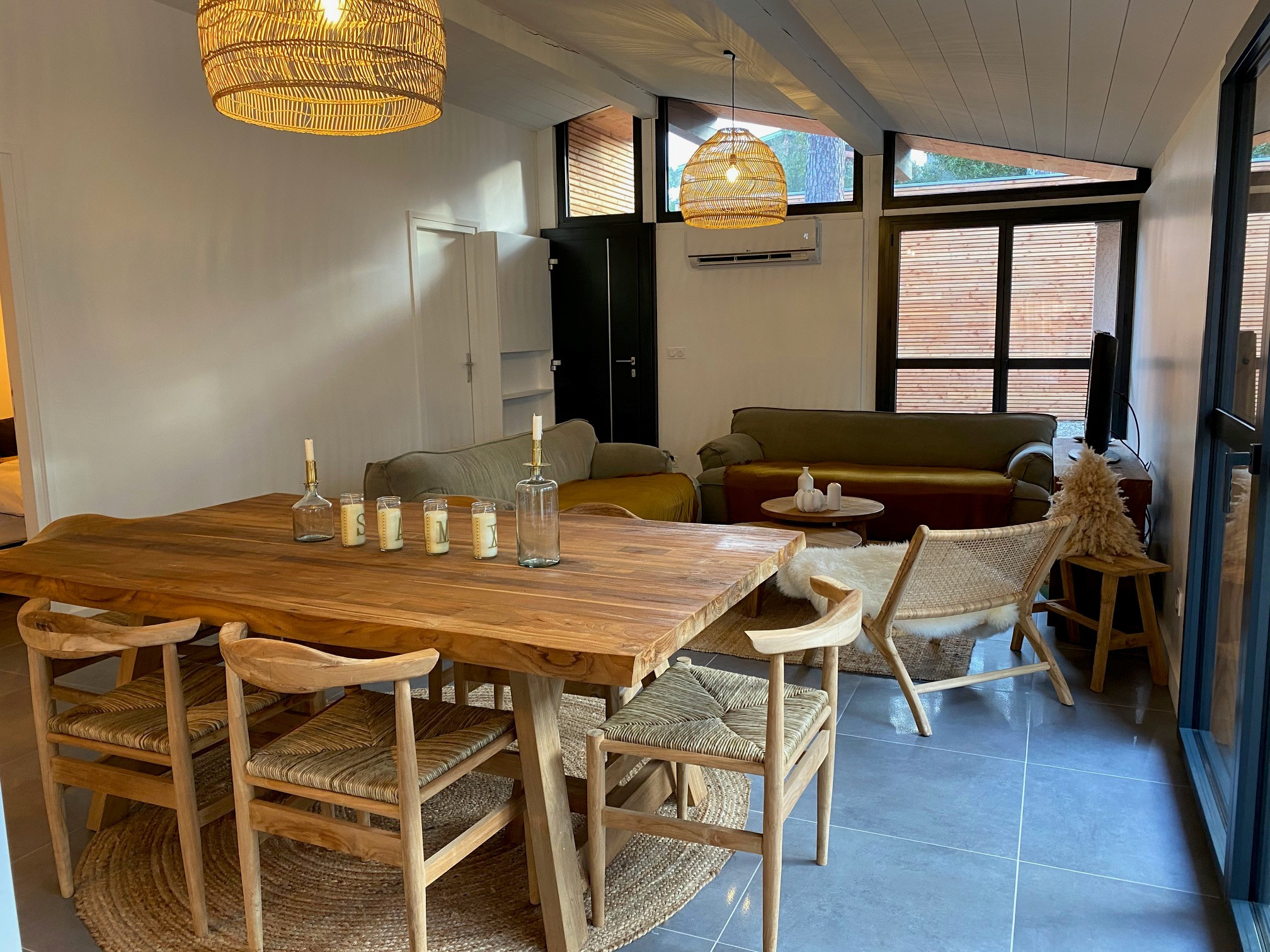 SÉJOUR : table - chaises - canapé - fauteuils - TV