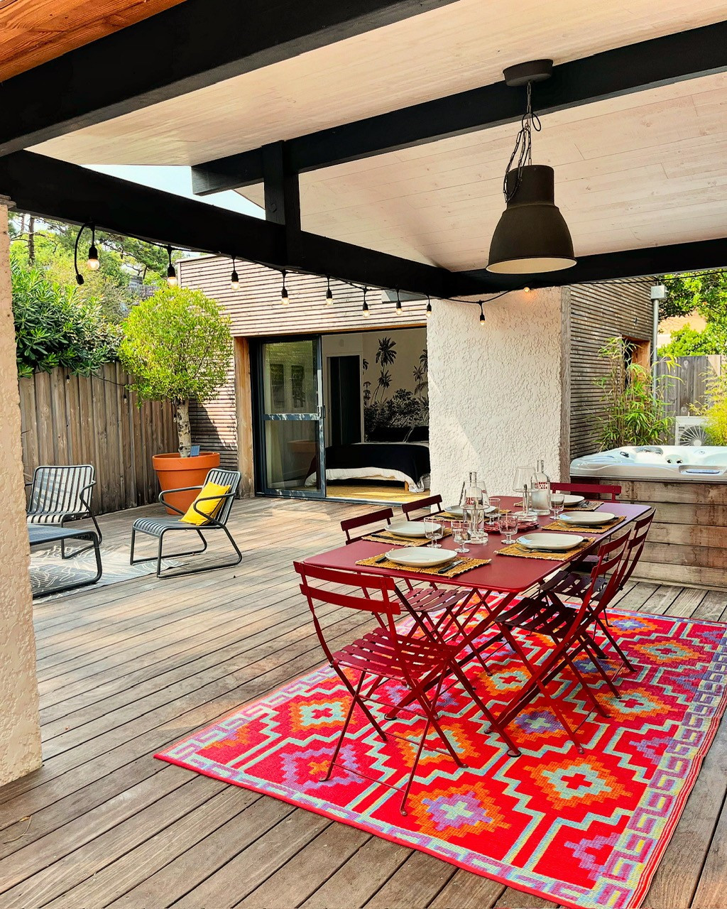 TERRASSE (sur séjour) avec table et chaises - Jacuzzi - douche extérieure