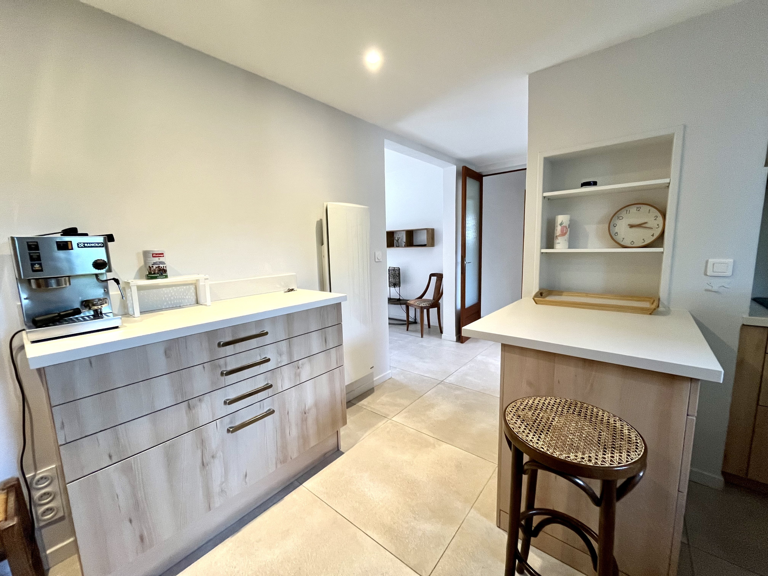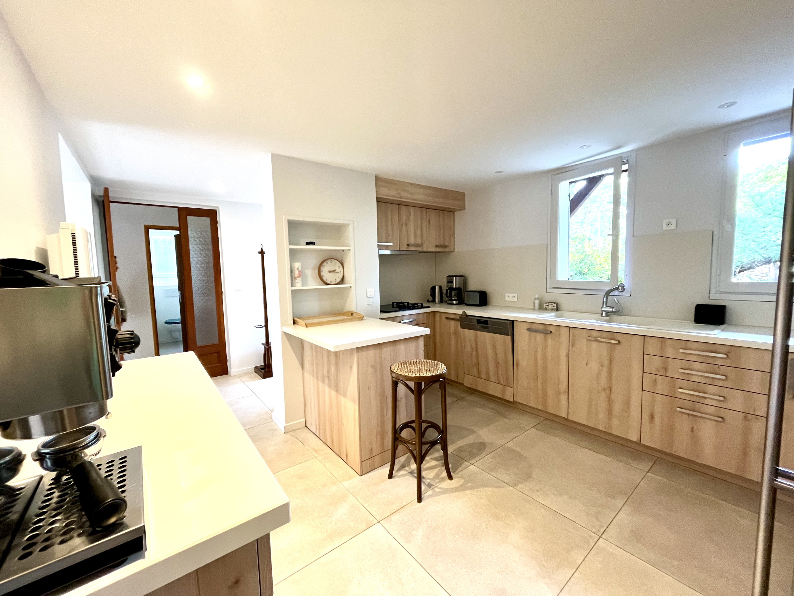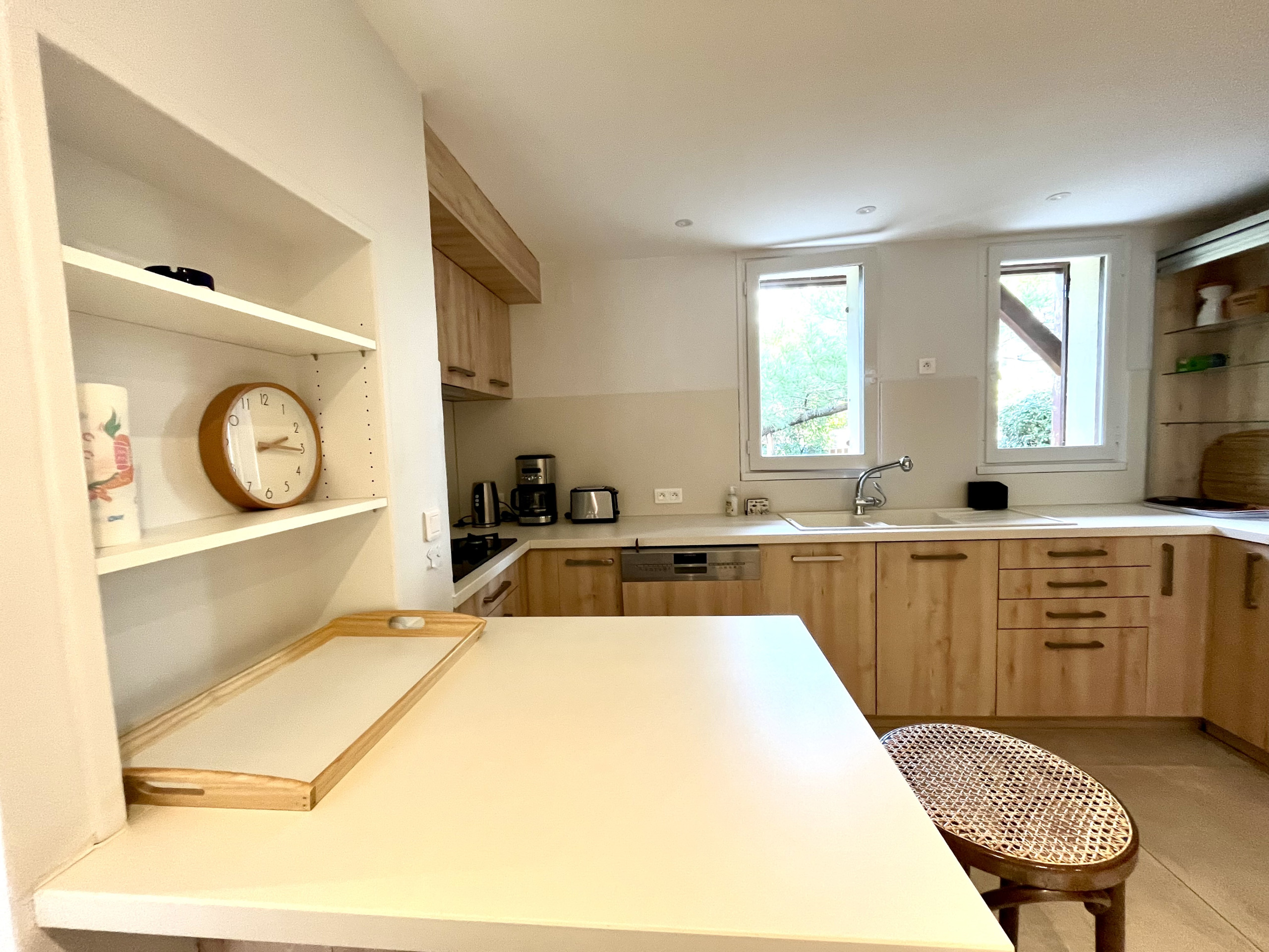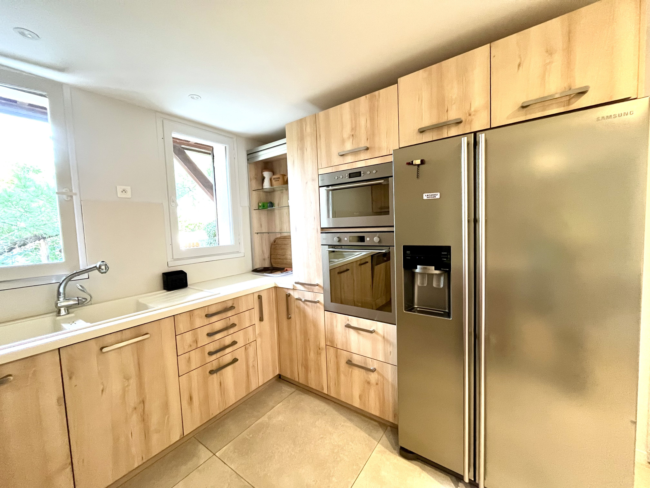 CUISINE EQUIPEE : évier - plaque vitro céramique - four micro-ondes - four - réfrigérateur/congélateur - lave vaisselle - placards de rangement - vaisselle et ustensiles de cuisine