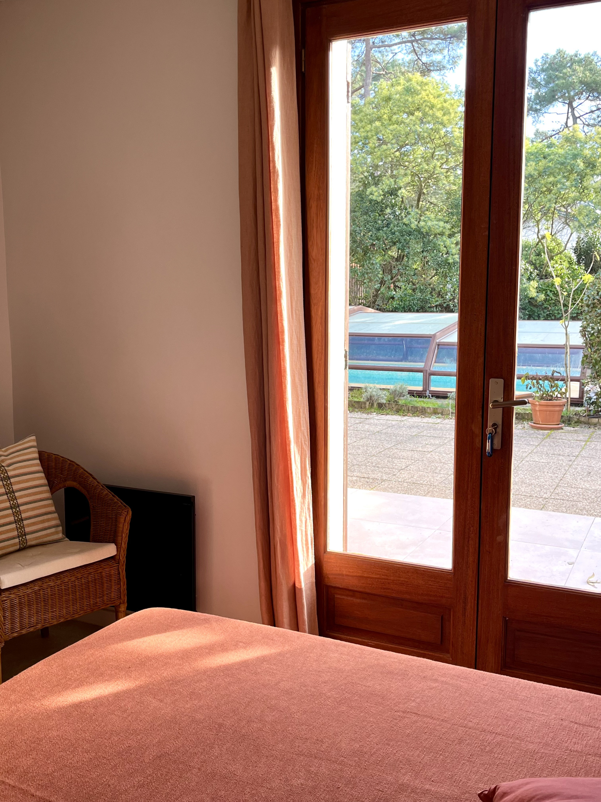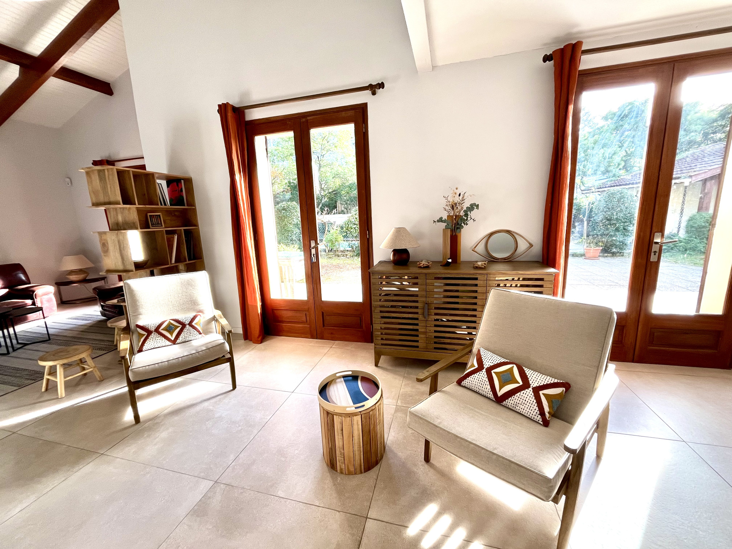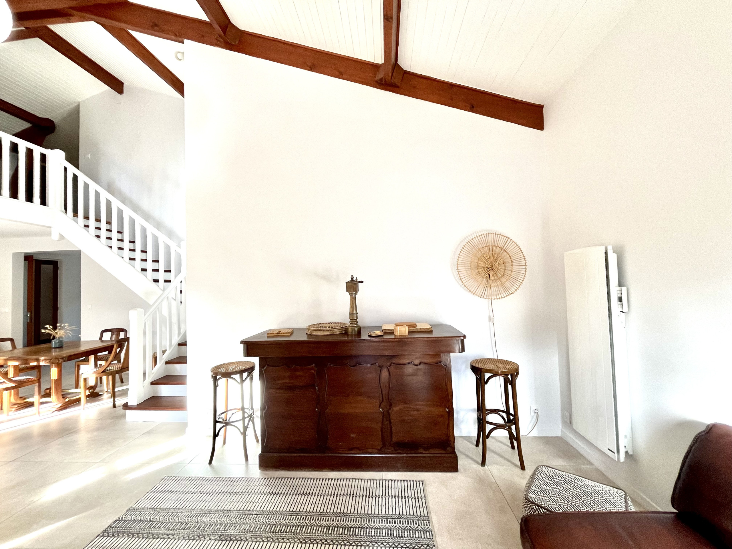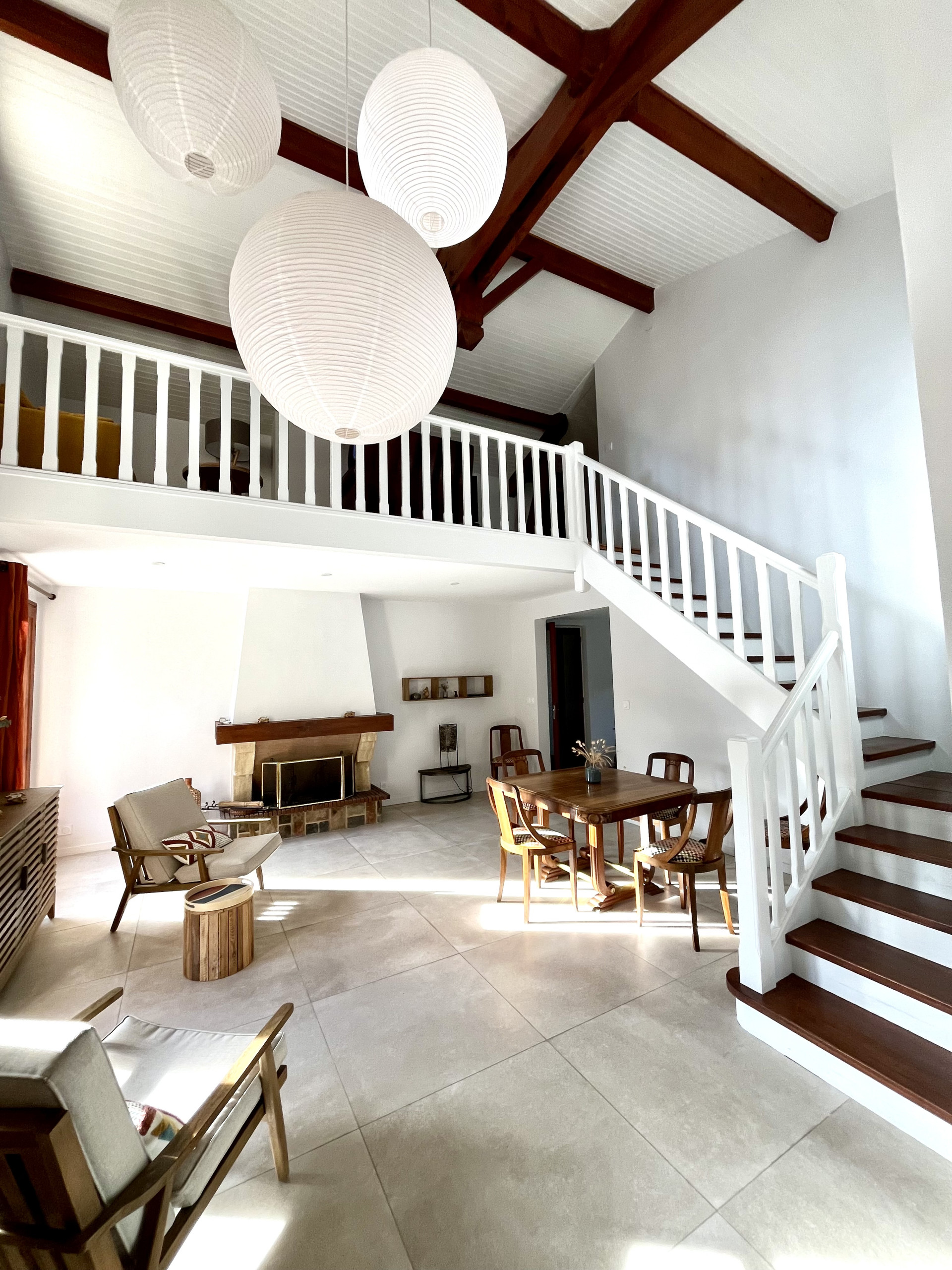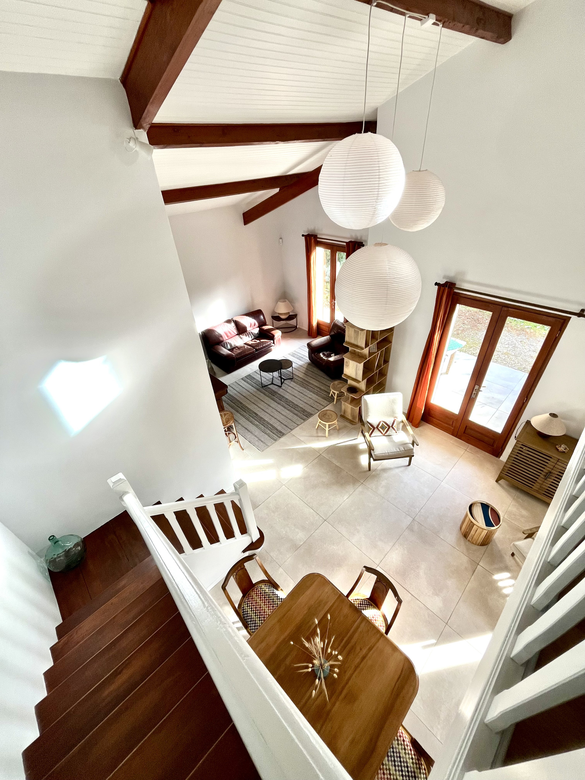 Très belle villa rénovée avec goût située quartier sud de Lacanau, équipée avec piscine et WIFI.