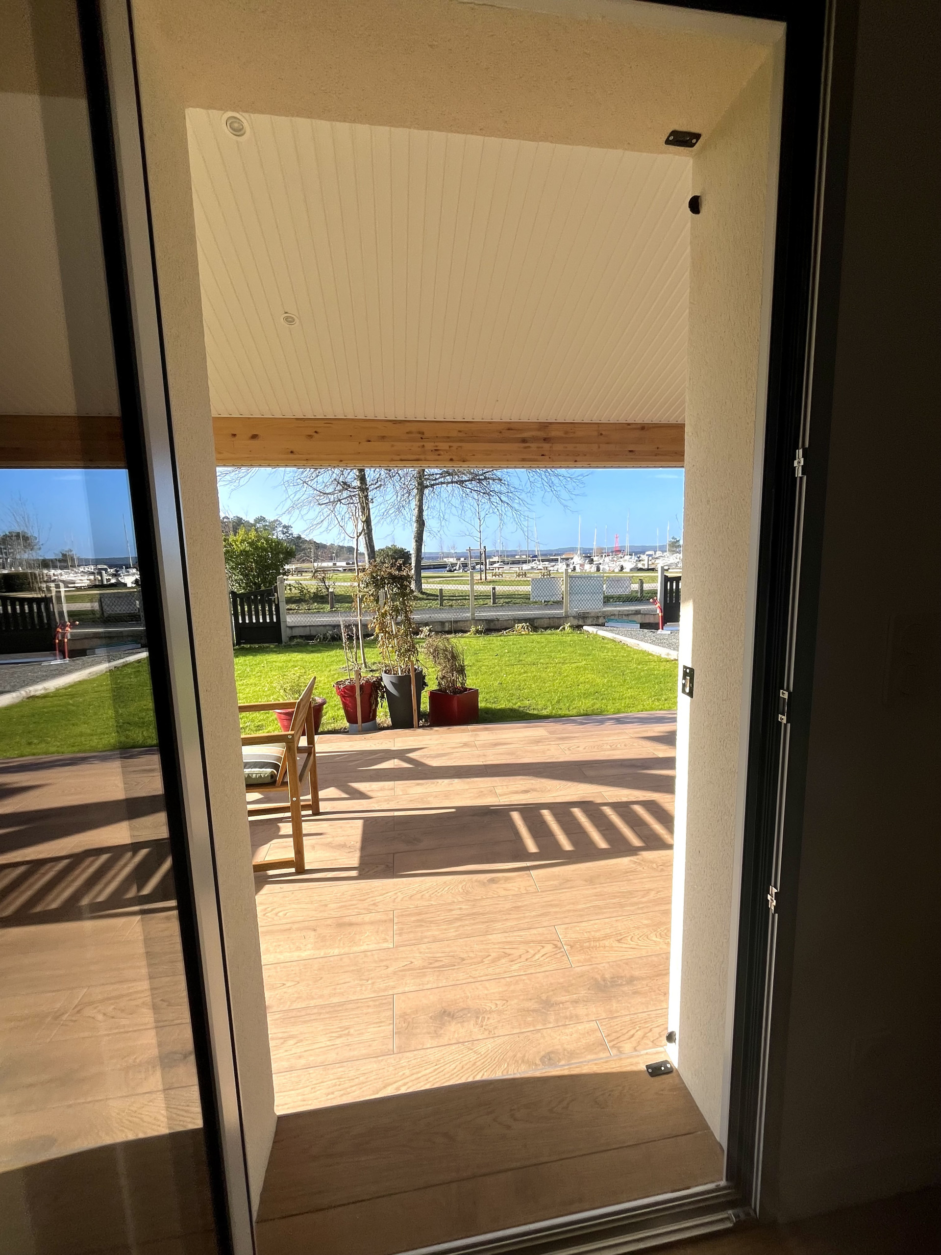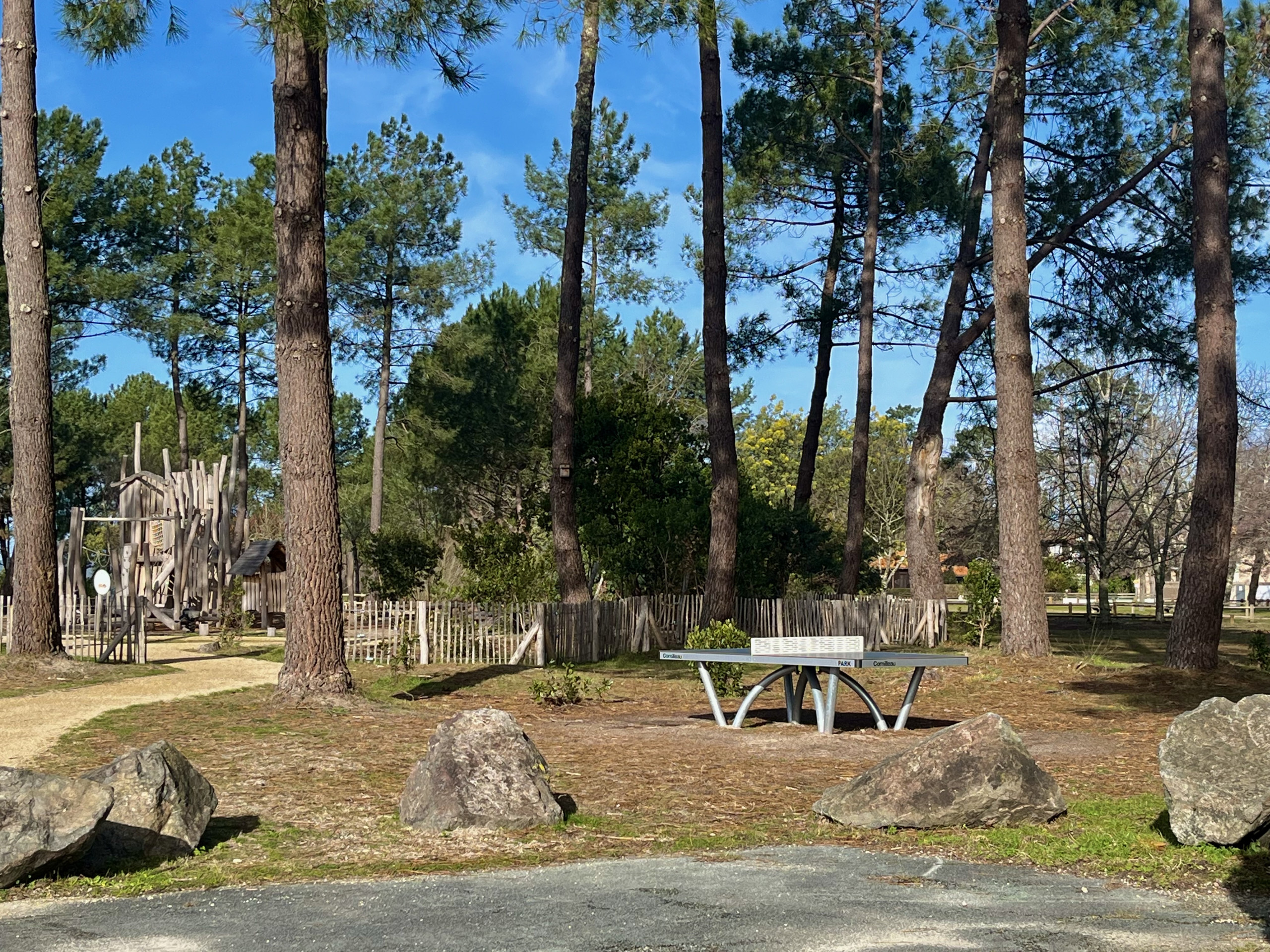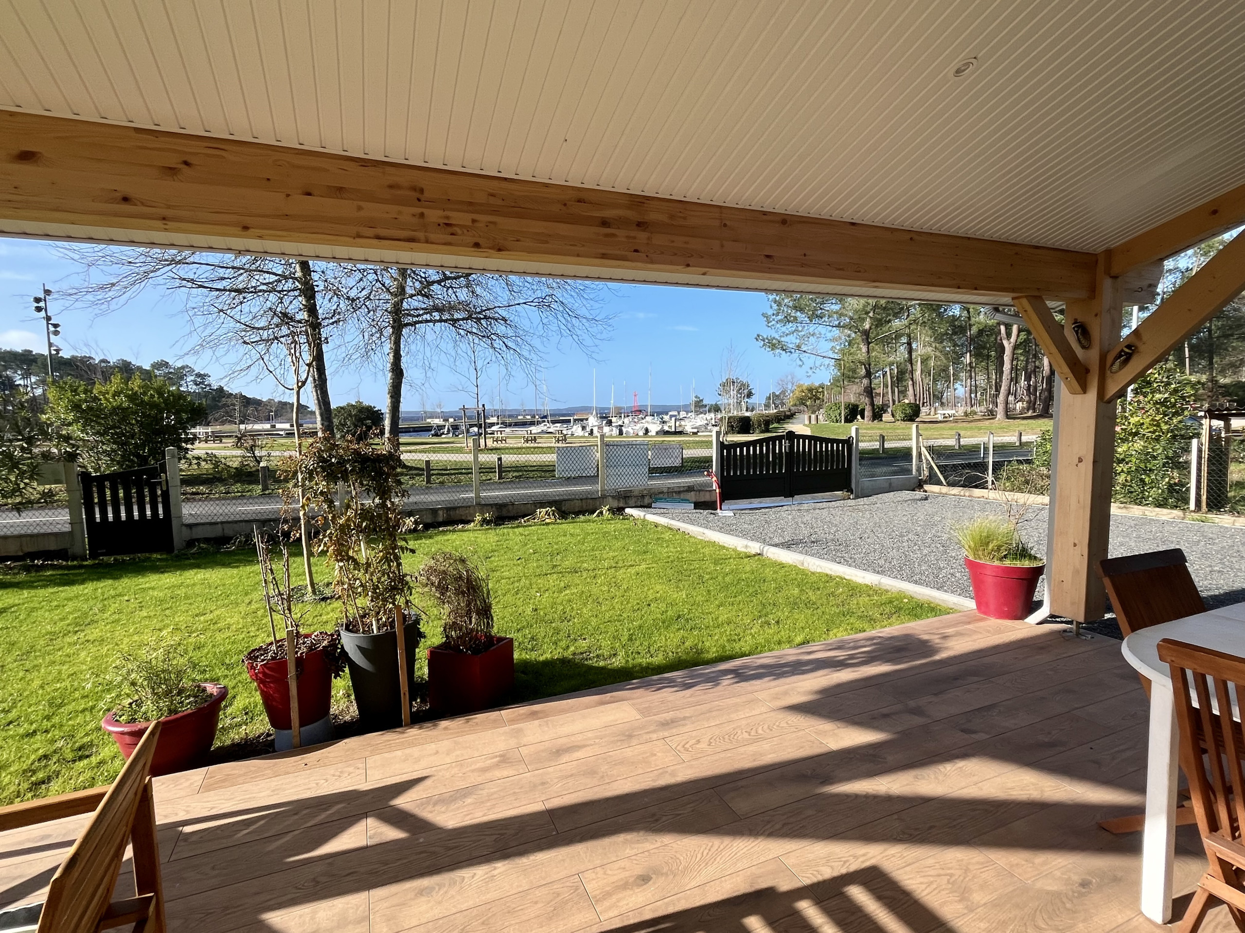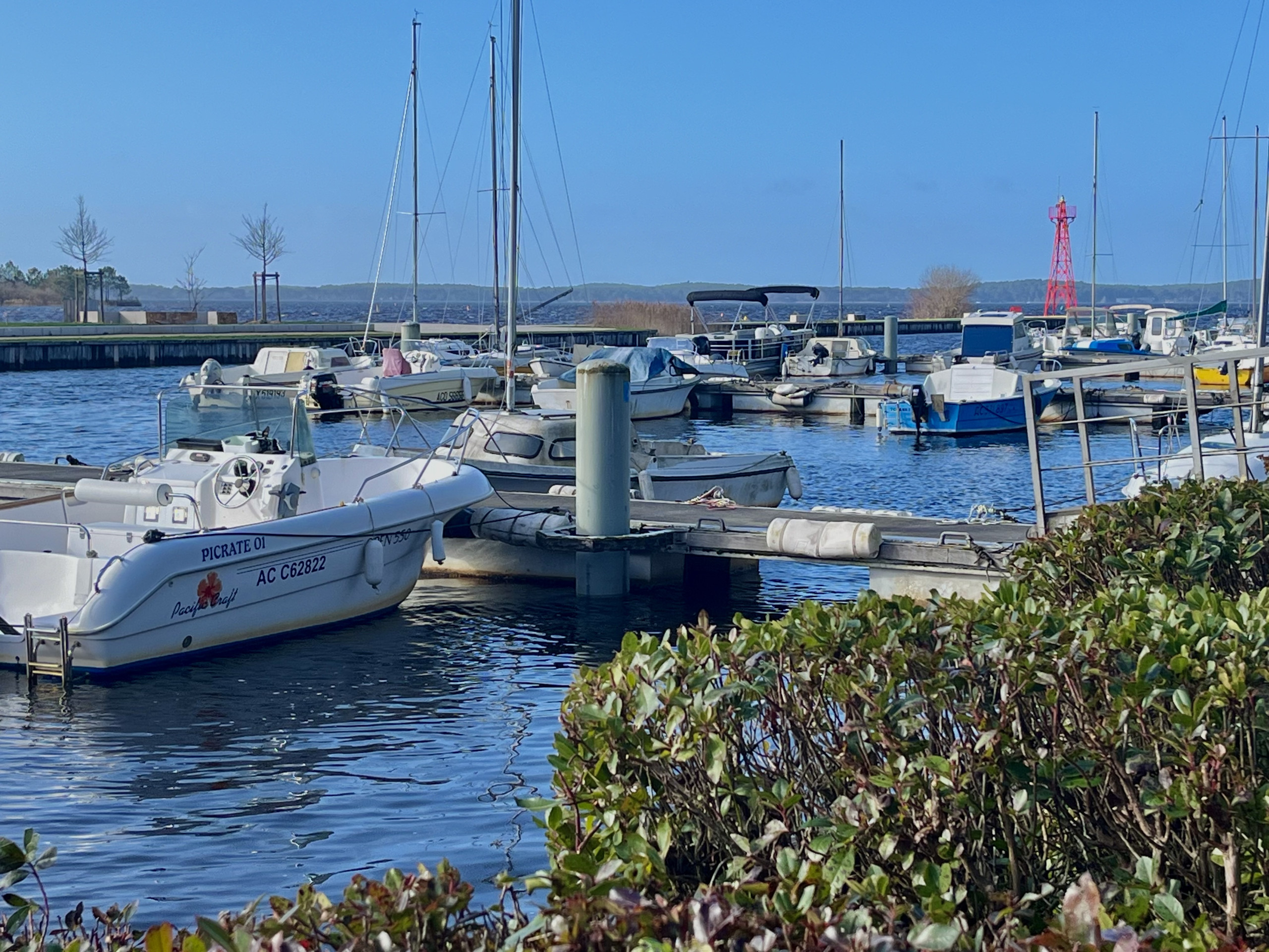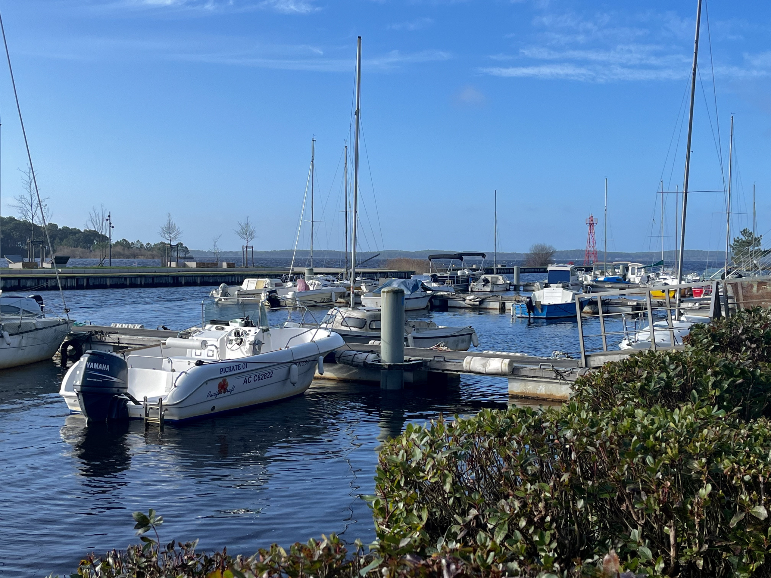 Le jardin clos avec vue sur le port de plaisance, offre un cadre particulièrement agréable pour les séjours avec enfants. Il donne directement sur des terrains de jeux (enfants et boulodrome). Les pistes cyclables toutes proches permettent de faire le tour du lac ou de rejoindre l’océan en toute sécurité.