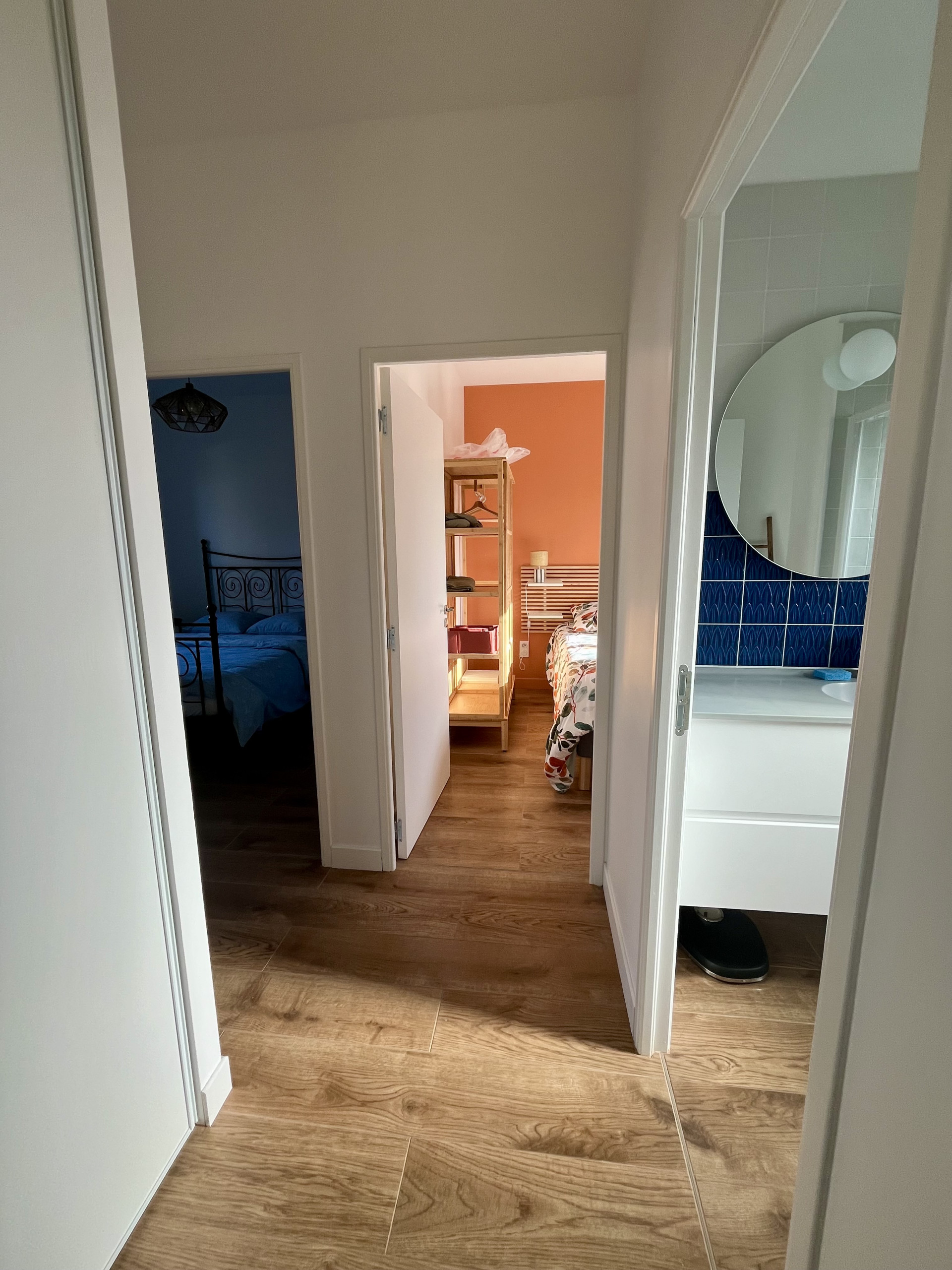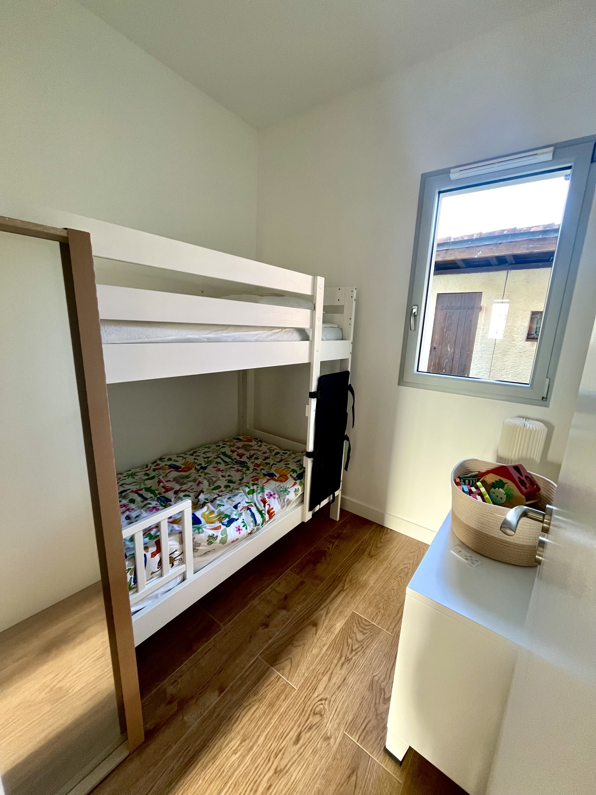 L’espace nuit se compose de trois chambres, une équipée d'un lit 160 cm avec penderie, une équipée d’un lit de 140 cm avec armoire et la dernière offrant des lits superposés 80 cm.
