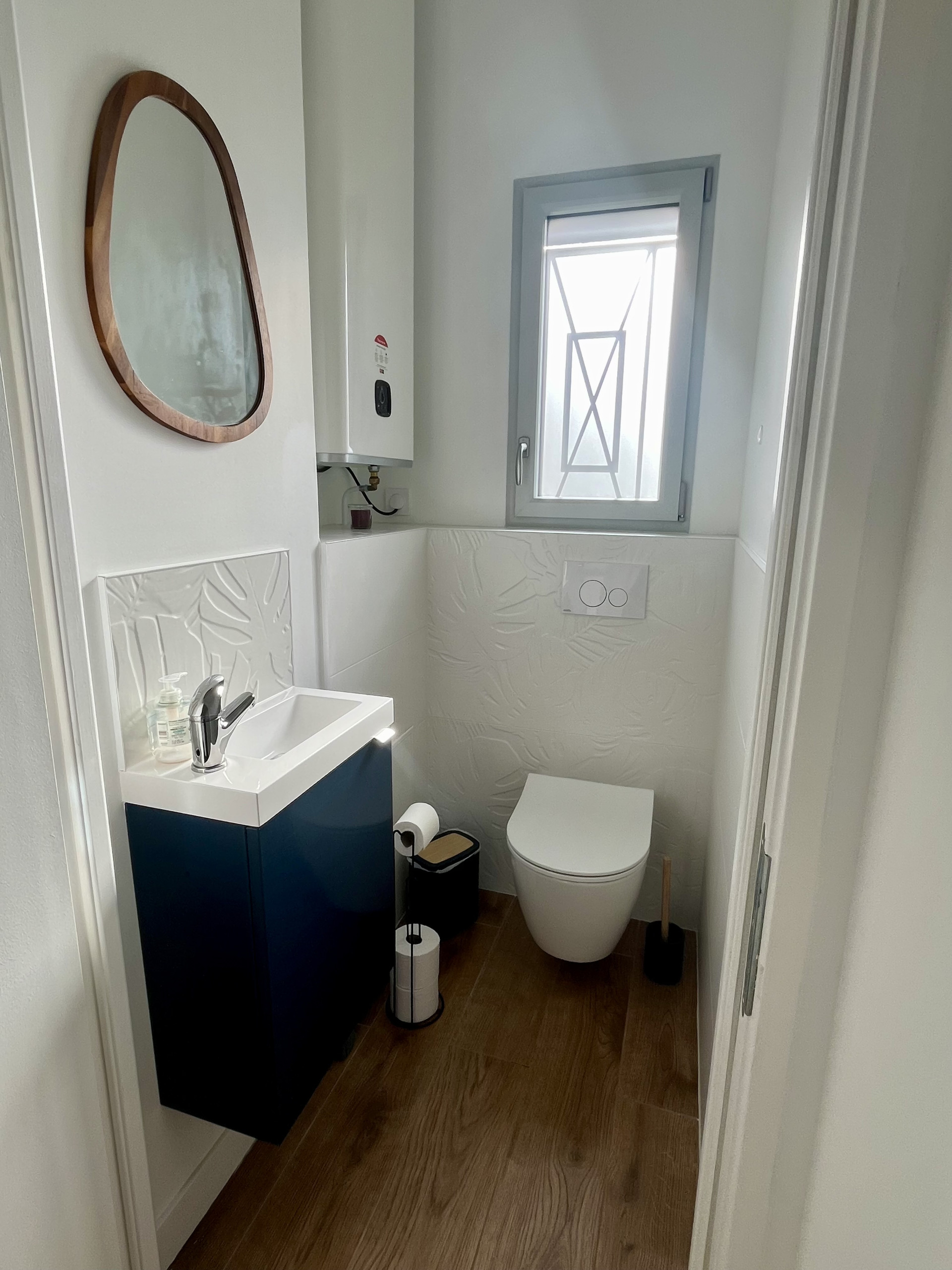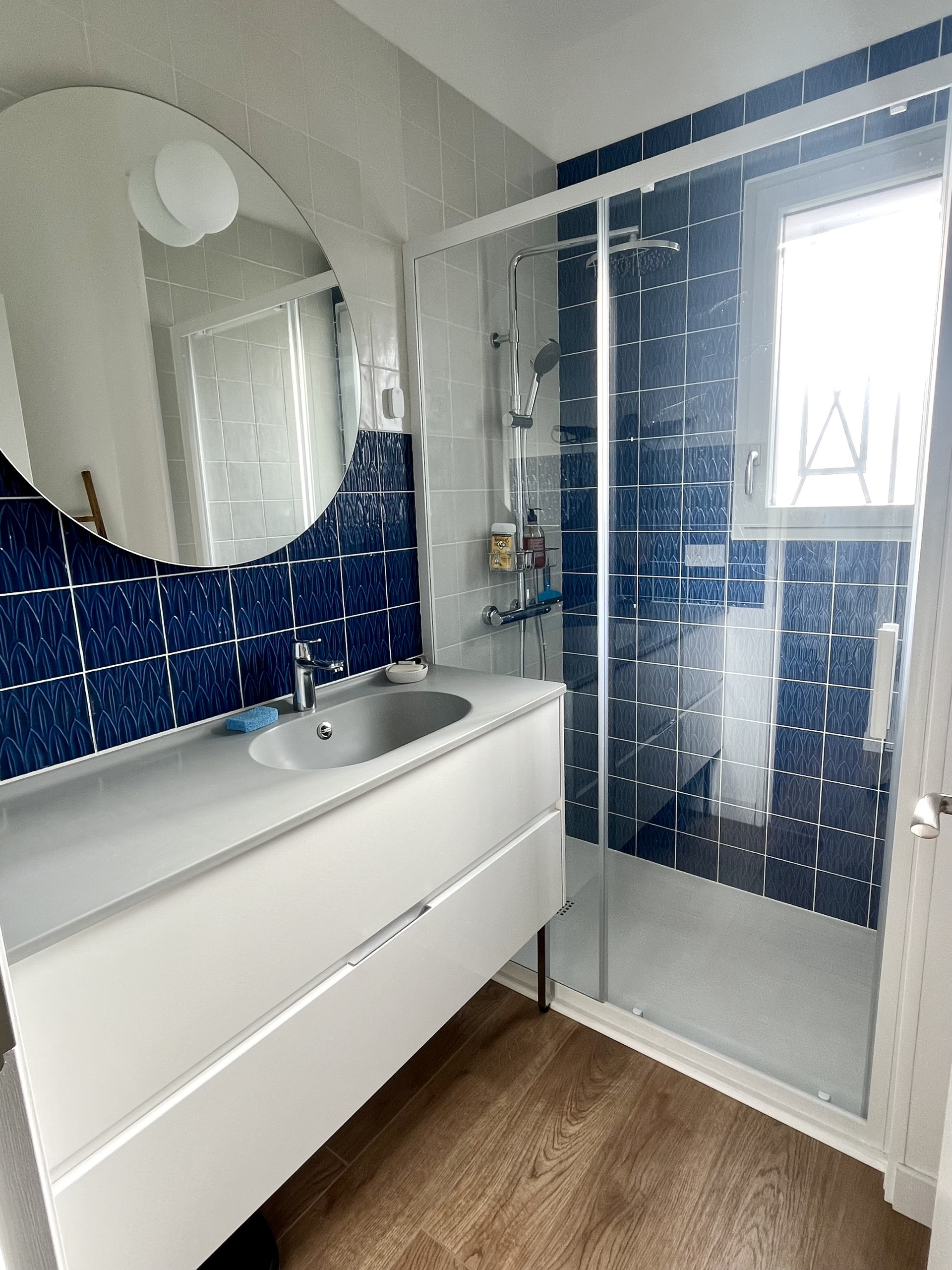 La salle d'eau dispose d'un lavabo et d'une douche, et les WC sont indépendants.