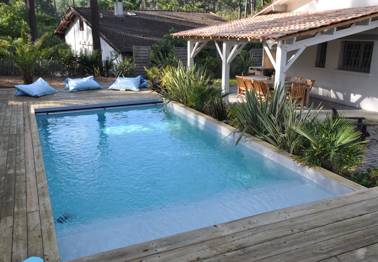 Très belle villa spacieuse de style landais entièrement rénovée avec piscine chauffée, WIFI, grand jardin avec terrain de pétanque à seulement 700m des plages de Lacanau - 265715