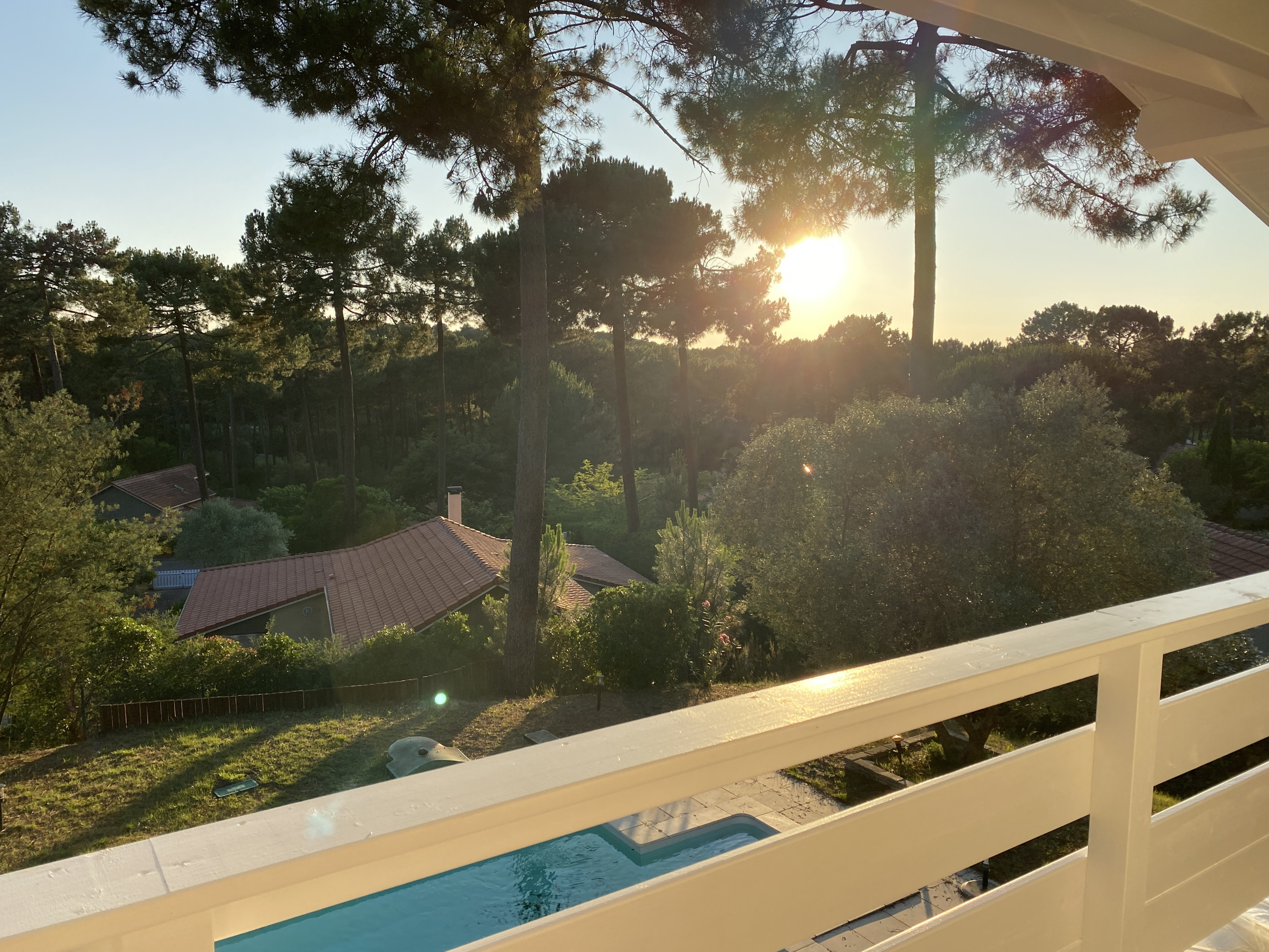 La maison, dans un environnement calme, domine les alentours et offre une vue dégagée depuis la terrasse avec piscine et le jardin. En soirée vous profiterez des couchers de soleil sur les pins.
